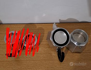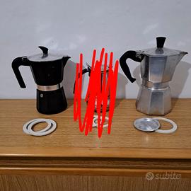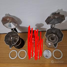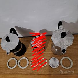 COPPIA di Caffettiere (moke) Usate : 1 grande, marca "Bialetti" ( filtro con diametro cm. 6,5 x 3 cm. profondità ) ; 1 grande, marca "Pedrini" ( filtro con diametro cm. 6,5 x 2,5 cm. profondità ) . ● In DOTAZIONE lascio anche : 1 Filtro + 3 Guarnizioni . NO Vendita Singola.