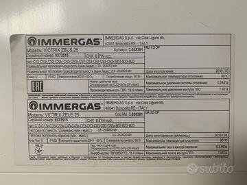 Caldaia a condensazione Immergas modello VICTRIX ZEUS 25 perfettamente funzionante e manutenzionata come previsto da legge vigente. Vendo per cambio sistema riscaldamento.