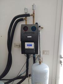 Caldaia a pellet Laminoux Solar Matic 22 kW con pannello solare termico Chaffoteaux, canna fumaria coibentata metri 10 circa, più attrezzatura per pulizia ceneri.