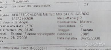 Caldaia Beretta come da foto. Dettagli in foto. Con termostato. Smontaggio e trasporto a carico dell'acquirente.