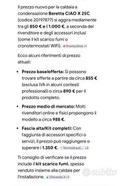 Vendo Nuova Caldaia “Beretta” ciao 25C Dettagli: Questa gamma, conserva le caratteristiche distintive delle caldaie firmate Beretta a Metano Completa Di Kit Scarico Fumi. È una caldaia a condensazione compatta ed efficiente, con funzioni avanzate di risparmio energetico e interfaccia touchpad per un uso intuitivo. Completamente imballata mai aperta. Prezzo attuale al negozio 870€ prezzo di vendita 670€. Cell. 3517592125