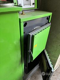 Come nuova, utilizzabile con legno, pellets, cippatino, gusci nocciole e mais. In dotazione serbatoio maggiorato per una durata operativa(senza ricarica) di circa 4 giorni.