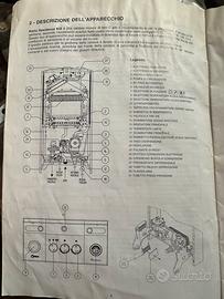 Caldaia murale Riello residence Kis a gas per riscaldamento e produzione di acqua calda sanitaria, con manuale di istruzioni. Dimensioni: 45x85hx30 cm Funzionante e sempre regolarmente revisionata. Solo ritiro a mano e pagamento in contanti.