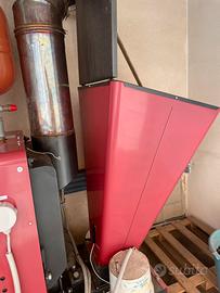 struttura modulare in acciaio verniciato, potenza nominale 69 KW, scambiatore termico orrizontale, dispositivo di protezione contro il ritorno di fiamma,braciere in ghisa, con silo di stoccaggio combustibile da 190 L con cablaggio elettrico. Combustibili utilizzabili: pellet di legna, legna, sansa, nocciolino, gusci triti.