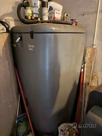 Caldaia tatano a pellet che contiene 6/7 sacchi di pellet alla volta, io la utilizzo per il riscaldamento di due appartamenti, più vascone acqua che è possibile collegarlo o meno a seconda dell’utilizzo per poter riscaldare anche l’acqua al suo interno.