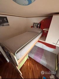 cameretta con 2 letti ,armadio,scrivania,scala con scalini con vani porta oggetti ,mensole ,armadietto rialzato e comodino.