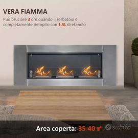 Materiali: Acciaio inossidabile, lamiera d'acciaio, vetro temperato - Dimensione totale: 136 x 14 x 54cm. Nota: Questo biocamino è da appendere sul muro.