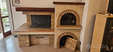 caminetto in pietra con forno pizza ideale per portici all'aperto