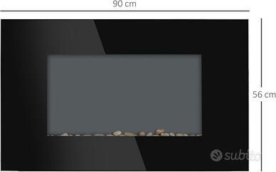 DIMENSIONE: Dimensione generale del camino elettrico: 90L x 9.5P x 56A cm, tensione d'ingresso 220-240V, 50Hz, copre superfici da 20-25㎡, da appendere direttamente al muro
