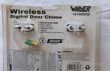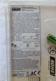 Kit con 1 trasmettitore/telecomando, funzionante con 1 batteria da 12Volt 23A, e 2 ricevitori, alimentati con la rete elettrica.