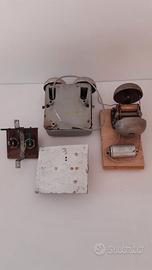 Vendo n. 3 campanelli elettrici per suonerie dei telefoni antichi, suoneria grigia completa di scatola grigia misura altezza 11 cm, con campanelli 14 cm, larga 10 cm, profondità 4 cm, con campanelli 7 cm, diametro campanelli 6 cm. Campanello singolo misura piastra 11x10, diametro campana 8 cm. Campanello sulla tavoletta, diametro 7 cm dei campanelli, distanza fra le due campane 13 cm, misura interruttore 7 cm x 6,5 cm. Spese di spedizione 12 euro.