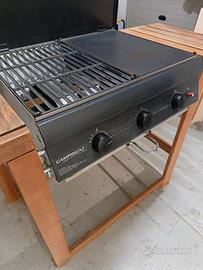Opzioni cottura infinite: griglia e piastra in ghisa ampie smaltate per BBQ in 2 parti (60 x 46 cm)