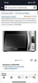 Candy COOKinAPP Forno a Microonde con Grill, 20 Litri, 700W, 40 Programmi, App Simply-Fi, Funzione Defrost e Start Express, Child Lock, Libera Installazione, 44 x 35,75 x 25,9 cm, Argento - CMXG20DS