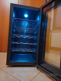 Cantinetta vino DA RIPARARE (non raffredda) marca KLARSTEIN a zona singola, ideale per conservare fino a 18 bottiglie in posizione orizzontale. La temperatura è controllabile tramite un pannello frontale touch, funzionante nell'intervallo tra 11 e 18 gradi. Porta in vetro e illuminazione interna a LED