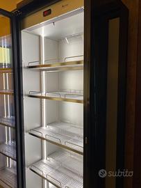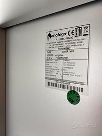 Cantinetta refrigerante ENOFRIGO mod. ENOGALAX monofacciale: altezza 2m, apertura porta a destra con serratura, gas R13, quattro zoccoli in acciaio, quattro ripiani doppi reclinabili e posizionabili a diverse altezze