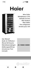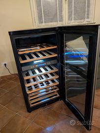 fantastica cantinetta per vini, design moderno ed elegante, ripiani in legno, doppia temperatura per vini bianchi e rossi, vetro temperato anti raggi UV, filtro ai carboni attivi. luci a led interni capacità 31/36 bottiglie di cui 3 magnum.