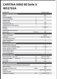 Cantina elettrica HAIER, modello "wine bank 60 serie 3" umidità, temperatura e luce costanti per un ottimale conservazione e invecchiamento del vino. Vendo causa trasloco in casa più piccola, acquistata solo due anni fa. In condizioni pari al nuovo. CAPIENZA 171 BOTTIGLIE CON RIPIANI IN LEGNO; COMPRESSORE ANTI-VIBRAZIONI E SILENZIOSO; Vetro con filtro anti-UV per bloccare la luce ed evitare alterazioni di colore e gusto dei vini; Filtro ai carboni attivi per purificare l'aria interna; DISPLAY TOUCH DIGITALE ESTERNO per una facile regolazione della temperatura con un tocco, senza aprire la porta; ILLUMINAZIONE LED. Molto elegante e funzionale. Unico difetto: è abbastanza pesante servono almeno due persone e un carrello per spostarla. Contattami per ulteriori richieste. prezzo non trattabile.