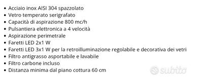 Cappa ad isola, acciaio inox AISI 304 spazzolato, 800 mc/h, filtro antigrasso asportabile e lavabile, linea Mirabilia.