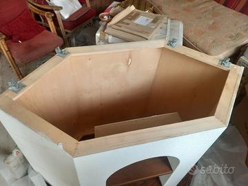 Bellissima cappa angolare nuova ancora imballata vendo per errata misura. Legno massello castagno. Ha due ripiani e si può adattare ad una cucina classica, rustica o in stile etnico.