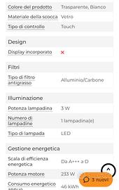 Cappa Elica modello Aplomb 60 cm, usato per due anni è perfetta, funziona sia per aspirazione diretta o con i filtri.