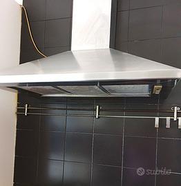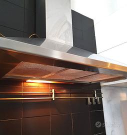 Cappa aspirante a parete in acciaio inossidabile marca ZANUSSI-REX, modello CA 656 DEX, con 3 filtri antigrasso in rete di alluminio, forma a piramide, funzionamento elettrico, luce inclusa, ventola a 3 velocità, dimensioni larghezza parte sottostante 90 cm., profondità parte sottostante 50 cm., H parte sottostante circa 27 cm., H parte sovrastante 90 cm., peso circa 12 kg. Con libretto d’istruzioni d’uso. Perfettamente funzionante, in più che buone condizioni, come da foto. Smontaggio, rimozione e trasporto a carico e cura del compratore. Ritiro a Milano, in zona Via Vincenzo Monti, primo piano, circa 30 mt.dall’atrio d’ingresso del palazzo fino all’appartamento. Gradini a salire ed a scendere in atrio ed in cortile.