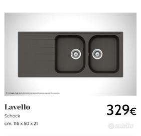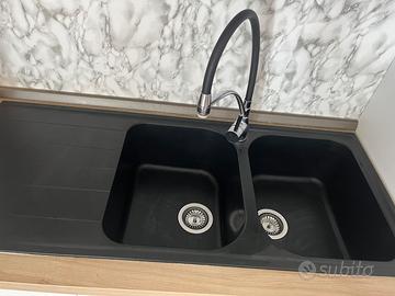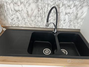Vendo lavello con due vasche e gocciolatoio nero e cappa nera ( la cappa non è mai stata usata ha ancora qualche sigillo ) lavello 6 mesi di vita. Misure lavello 116 x 50 x 21 cappa invece LARGHEZZA