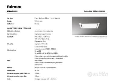 Cappa Falmec Stella Plus 90 bianca da incasso a soffitto, nella confezione originale mai aperta (per cambio modello). Disponibile fattura e scontrino per garanzia.