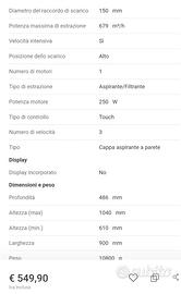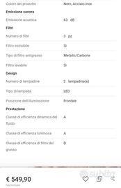 A causa del cambio progetto della cucina, vendo CAPPA ASPIRANTE GLEM GAS di colore nero, ad alta prestazione aspirante (679 Mc/h) NUOVA, ANCORA IMBALLATA!!!