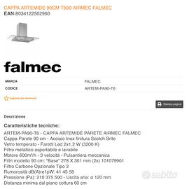 Vendo per inutilizzo cappa aspirante per cucina 90 cm in acciaio con piano in vetro perfettamente funzionante. Ritiro a mano a carico dell’acquirente. Marca: Falmec. Usata, ma in ottimo stato.