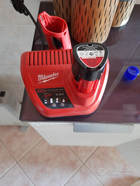 Carica batteria milwaukee C12C più una batteria M12, funzionanti. Vendo per inutilizzo. Prezzo trattabile.