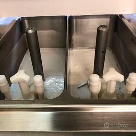 Macchina DUE GUSTI da pavimento. Ideale per produrre tutti i tipi di yogurt o gelato soft, monoporzione, torte da gelato ecc.. La macchina assicura ottimi risultati di produzione. Carpigiani XVL 3 SP/P Classic è la macchina a due gusti più mix da pavimento con pompa. Carpigiani XVL 3 SP/P Classic è ideale per produrre gelato soft e frozen yogurt con prestazioni elevate. Con la sua altissima versatilità e capacità produttiva Carpigiani XVL 3 SP/P Classic soddisfa ogni cliente. Con la sua grande capacità produttiva garantisce continuità di erogazione anche nei momenti di massimo afflusso di clienti. L’elevata versatilità e flessibilità di produzione della Carpigiani XVL 3 SP/P Classic soddisfa le necessità di ogni cliente producendo un’ampia gamma di specialità: gelato soft, frozen yogurt, sorbetti di frutta e monoporzioni. La Carpigiani XVL 3 SP/P Classic ha il controllo elettronico della consistenza e dell’overrun con possibilità di impostare consistenze diverse a seconda della miscela utilizzata e facilità di modifica dell’overrun. Caratteristiche tecniche: Due motori agitatori e cilindri indipendenti Sistema di auto pastorizzazione Pompe pressurizzate ad ingranaggi in acciaio Display interattivo Sistema automatico di chiusura leve Pulizia riscaldata del cilindro Capacità vasca: 13+13 litri Caratteristiche elettriche: Alimentazione: 400V/3Ph/50Hz Potenza: 5 kW Condensatore: ACQUA Dimensioni e Peso: L50,5XP78,5Xh160,5 cm 310 kg Prezzo di listino 24.000+iva