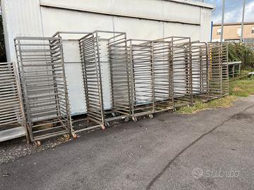 Carrelli inox portateglie con teglie baguettes per forno rotor Dimensioni cm 80x60 Circa 20 Pz disponibili Prezzo riferito ad ogno singolo carrello completo di 15 teglie baguettes Fatturabili Iva esclusa