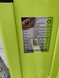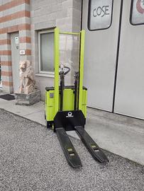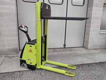 Transpallet elettrico giraffa di marca Pramac modello LX 16/16, con batteria da 24V, portata 1600kg, 160cm di massima alzata-