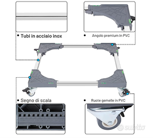 Carrello Lavatrice con 4 Ruote con Bloccaggio, Carico Pesante 200KG Base, Larghezza Regolabile 40-62cm Mobile anche per Asciugatrice e frigorifero. Acquistato a € 35,99 e mai usato. Nuovo con scatola originale. Vendo per cambiate esigenze.