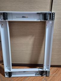 Carrello regolabile e estensibile per lavatrice. Ha ruote per scorrimento unica direzione più le leve di blocco.