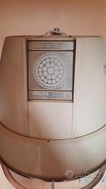 Casco asciugacapelli vintage anni 50 perfettamente funzionante! Marca Philips, 10 scatti di calore, funzionante con presa elettrica, specifiche potenza in foto. Altezza 1,43 mt. Si compone da casco e 4 bastoni assemblaggi in acciaio, che si incastrano facilmente sul treppiedi. Perfettamente funzionante, color panna, beige, colore tipico anni 80. Nessuna rottura, solo il tre piedi presenta un po di ruggine superficiale come si vede in foto, che con una pagliuzza metallica, viene via facilmente. Ha un foro dietro il casco che si può utilizzare per attaccarlo in modo fisso al muro. Essendo calore diffuso non secca i capelli e li rende morbidi e cotonati. Si può usare a casa, a lavoro, o come arredo vintage!!!