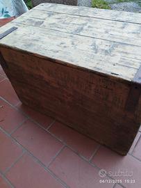 cassapanca in legno cm 99*58,5 h 58 esterno. il fondo e le pareti laterali sono un unico pezzo. misure interne 83,5*49*52