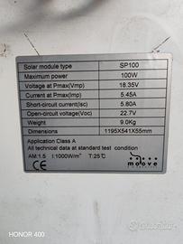 Vendo pannello solare moscatelli moove 100w con regolatore di carica CBE PRS 300 tutto funzionante.