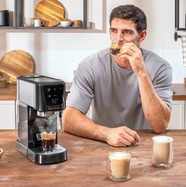 Cecotec Macchina Caffè Espresso Cappuccino Power Espresso 20 Touch. 1350W, 20 Bar Schermo Tattile Vaporizzatore Capacità 1L Thermoblock, Scalda Tazze, Vassoio Gocce, Accessori touchscreen, montalatte rimovibile e design compatto. Caffè come al bar a casa tua! è la soluzione ideale per chi desidera gustare un espresso di qualità professionale direttamente a casa. Con i suoi 20 bar di pressione e il sistema Thermoblock, garantisce un’estrazione perfetta dell’aroma e un riscaldamento rapido e uniforme. Il touchscreen a colori rende l’utilizzo semplice e intuitivo, mentre il montalatte rimovibile ti consente di preparare cappuccini e caffellatte con una schiuma densa e cremosa. Progettata con materiali resistenti e un design compatto, si adatta perfettamente a ogni cucina. per un espresso ricco di crema e gusto. Touchscreen a colori per un controllo semplice e moderno. per creare cappuccini e bevande cremose. Sistema Thermoblock per riscaldamento rapido e uniforme. Protezione da surriscaldamento e sovrapressione Design compatto adatto a qualsiasi spazio. Facile da pulire con vassoio raccogligocce removibile. Macchina per caffè espresso con montalatte Potenza 1350 W Tensione 220 V Capacità serbatoio 1 Litro Pressione 20 Bar Dimensioni 28,5 (P) × 15,8 (L) × 30,5 (H) cm Peso 3,41 kg Caratteristica speciale Programmabile, touchscreen, Thermoblock, ✅ Caffè espresso di qualità professionale ✅ Cappuccini e latte macchiati con schiuma perfetta ✅ Controllo touch moderno e intuitivo ✅ Sicurezza e facilità di pulizia ✅ Design elegante e compatto 📦 Contenuto della confezione : Macchina da caffè Cecotec Power Espresso 20 Touch, Montalatte rimovibile, Vassoio raccogligocce ,Manuale d’uso multilingue