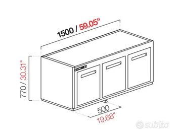 CAPACITA' CELLA lt 558 - DIM. Cm L 150 x P 68,5 x h 77