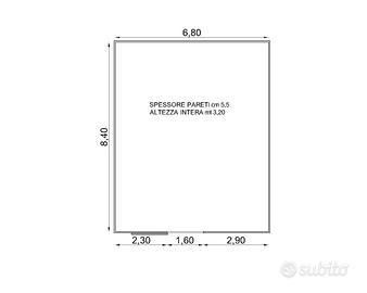 Cella frigo Dimensioni intere mt 6,80 x 8,40, altezza interna mt 3,20, spessore pareti cm 5,5. Smontaggio e trasporto a carico dell'acquirente.