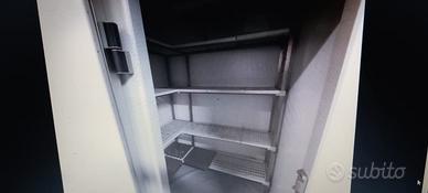 4 celle di 1,30x1,30 con 4 porte a temperature diverse a corpo unico,1 cella singola abbattitore con 1,30x1,30.Complete di scaffalatura di acciaio interna.