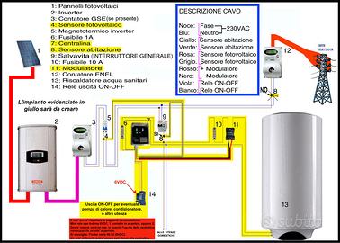 Il tutto avviene tramite un’uscita modulare, collegabile a un boiler con resistenza elettrica (scaldabagno).