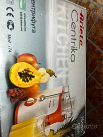 Vendo centrifuga Ariete Centrika (Mod. 174), compatta e potente, ideale per preparare succhi freschi di frutta e verdura in pochi secondi. Il prodotto è nuovo, mai usato, ancora protetto dall'imballaggio originale in polistirolo.