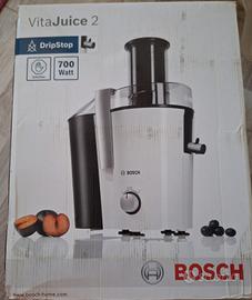 Come da titolo vendesi centrifuga estrattore della Bosch modello MES25A0, Vita Juice 2, con potenza di 700w, apertura xl, colore bianco e antracite, nuova, nella sua confezione originale completa di tutti gli accessori.