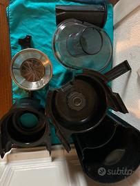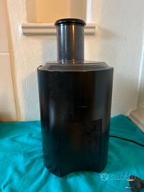 Vendo centrifuga Braun J300 Multiquick 3, colore nero, perfettamente funzionante e conpleta di tutti gli accessori originali. È un apparecchio potente e robusto, ideale per estrarre succo limpido da frutta e verdura in pochi secondi. 2 velocità: una per frutta morbida ed una per frutta dura (per esempio mele e carote). Motore potente da 800W che gestisce senza sforzo anche frutta intera, grazie al ampio tubo di inserimento da 75mm, non serve tagliare tutto a pezzetti. Beccuccio salvagoccia. Filtro a microtrama in acciaio inox. Ha un leggero difetto di un’onda, ma funziona benissimo. Il fermo sul coperchio è stato incollato perché si era rotto (cone da terza foto)