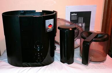 La Braun Multiquick J300 fa perfetti succhi di frutta e verdura. Con tubo largo per introdurre mele intere, barattolo da 1250 ccm, sistema di centrifugazione rapida, bastano 15 secondi per un bicchiere di succo fresco... può processare due litri di polpa di frutta e verdura di tutti i tipi e per tutti i gusti. Due velocità per adattare la potenza alle polpe morbide o dure...Con 800 W di potenza, facile da pulire, montare e smontare,