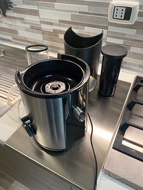 Completa di: filtro/cestello in acciaio, spingitore, contenitore polpa, coperchio.