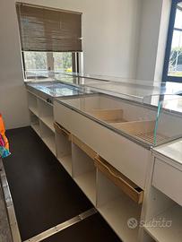 ARREDAMENTO ZONA PANE E CALDO VOSTRO LOCALE RIVENDITA PANNELLATO IN NOBILITATO IDROFUGO ESSENZA LEGNO E TOP IN HANEX, COSI COMPOSTO: