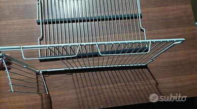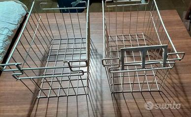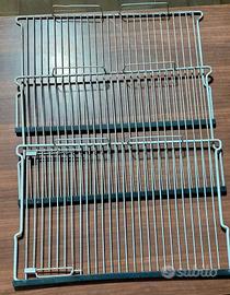 Vendo 7 cesti per congelatore o freezer. Realizzati in robusto filo metallico plastificato €10/cad e 8 ripiani per frigorifero realizzati con robusta struttura metallica a filo con plastificazione €10/cad (misure standard). I cesti hanno tutti forma conica con queste le misure indicative: base 40 x 22, sommità 45 x 27, h. 23 (2 pezzi) base 41 x 19, sommità 46 x 24, h. 21 (3 pezzi) base 42 x 22, sommità 47 x 28, h. 23 (1 pezzo) base 36 x 24, sommità 41 x 27, h. 22 (1 pezzo). I cesti possono andare sia in appoggio al bordo di chiusura del freezer, sia in appoggio alla base del freezer o in appoggio su altri alimenti che sono congelati. Preferito ritiro a cura dell'acquirente ma all'occorrenza spedisco
